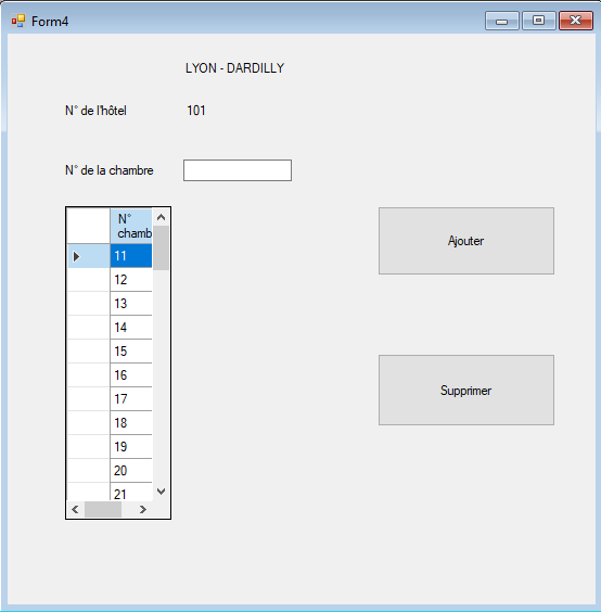 Fonctionnalité n°3 - Gestion des chambres à l’hôtel, ajouter ou supprimer. Toutes les chambres sont référencées avec une numérotation de chambre spécifique à chaque hôtel.