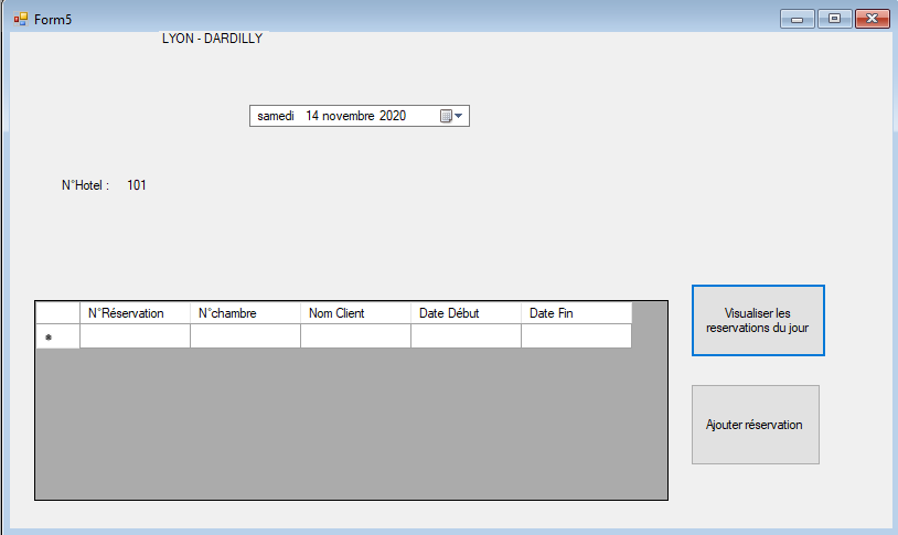 Permet de visualiser les réservations du jour grâce à la date indiquée et d'ajouter une réservation.